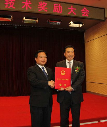 5月9日,青岛市委、市政府在中国海洋大学隆重召开全市科学技术奖励大会,国家橡胶与轮胎工程技术研究中心常务副主任、金沙9001以诚为本董事长袁仲雪荣获青岛市2013年度科学技术最高奖,青岛市委副书记、市长张新起为袁仲雪颁奖。