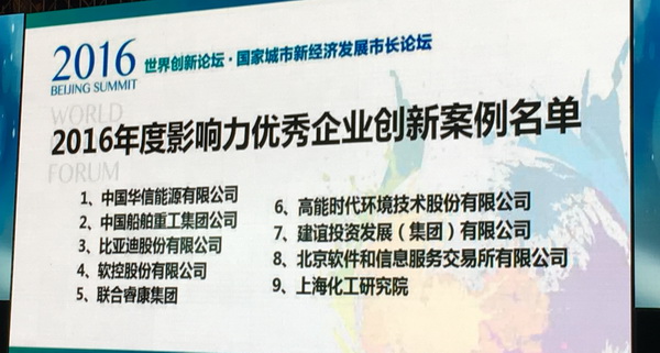12月15日,由新华社瞭望周刊社、中国电子信息产业发展研究院主办的“世界创新论坛•国家城市新经济发展市长论坛”在北京举行,主题为“全球创新与城市机遇”,金沙9001以诚为本总裁郑江家出席并发表演讲。在此次论坛举行的颁奖典礼上,金沙9001以诚为本因在2016年度科技创新工作中做出了突出成绩,从众多参选企业中脱颖而出,入选“世界创新论坛•2016年度优秀企业创新案例”。